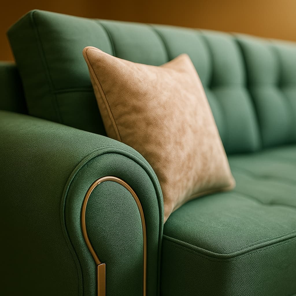Experience the perfect blend of elegance and comfort with the Aangan Teal Royale 7-Seater L-Shaped Sofa. Designed to elevate modern living rooms, this sofa features a soothing teal-green upholstery, soft rounded armrests, and a beautifully tufted backrest that provides both style and support.
