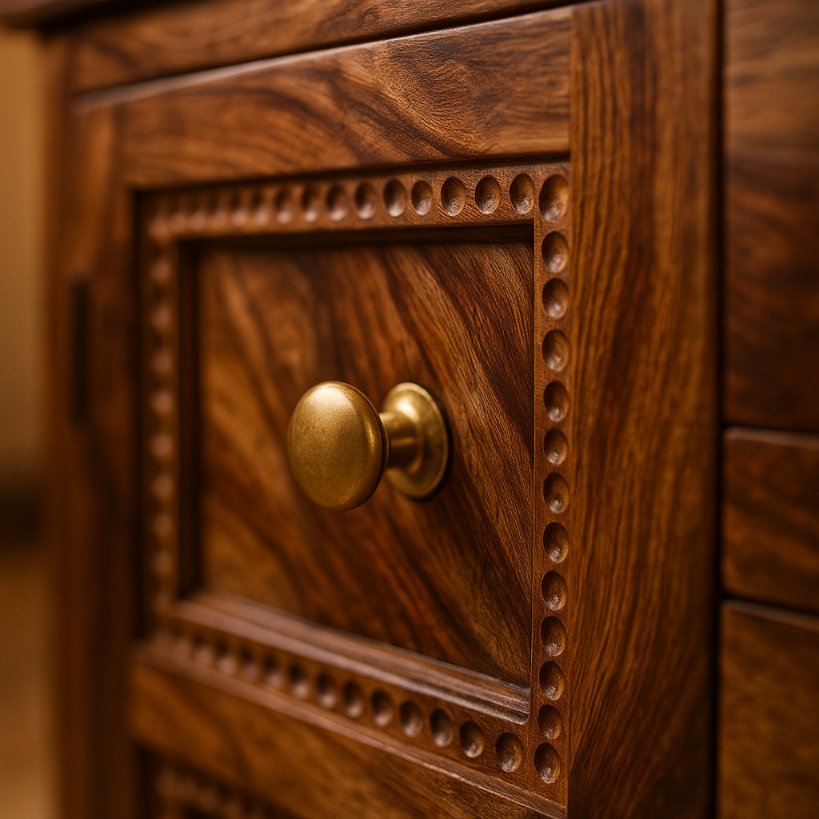 A stunning solid-wood sideboard featuring vibrant hand-painted ceramic tiles and traditional brass accents. With spacious drawers and dual-door storage, this piece adds a warm, ethnic charm to any living or dining space.