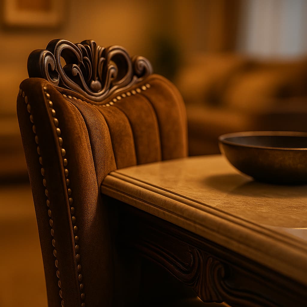 The soft velvet-finish cushioning ensures unmatched comfort, while the solid wooden legs offer long-lasting durability and stability. Designed for families who prefer a premium and spacious dining setup, this table stands out with its grand presence and classic artistry.