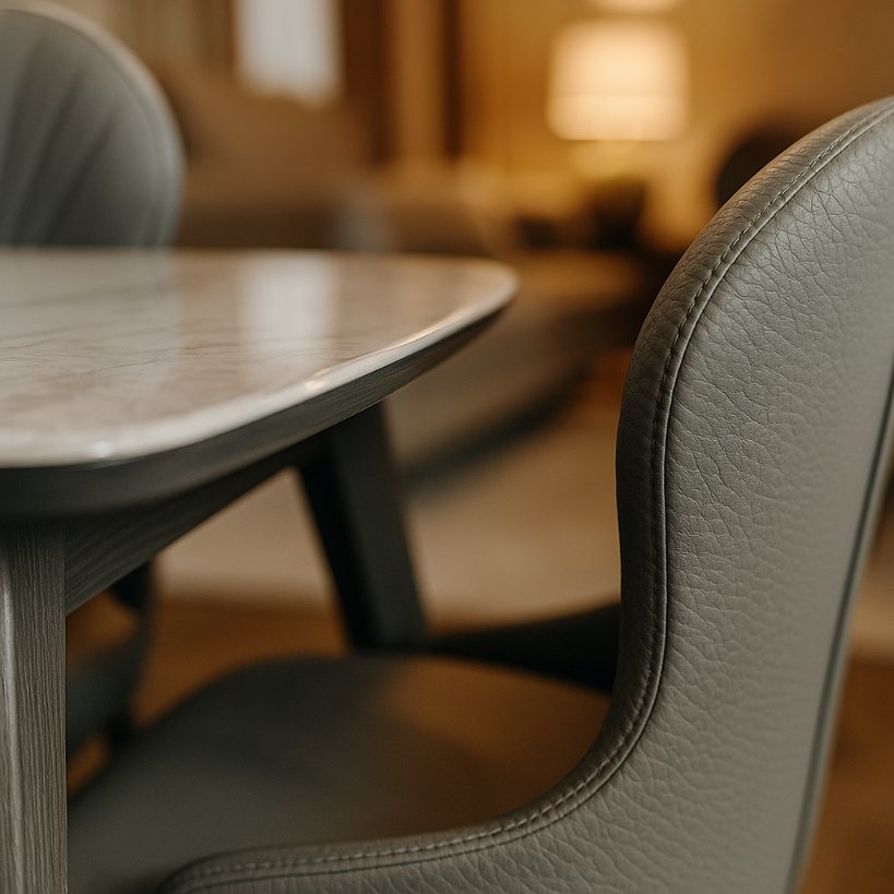 Premium Marble-Finish Tabletop β Smooth, stain-resistant surface with a modern curved-edge design