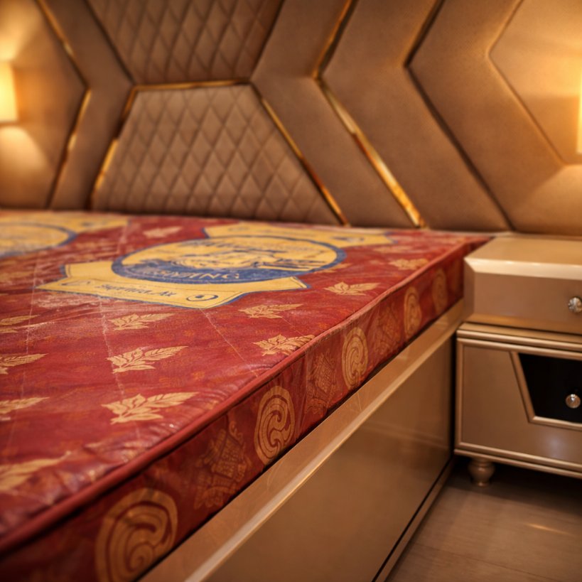 The Nova Luxe Upholstered Bed is designed for modern homes that appreciate refined detailing and structured elegance. Featuring a bold geometric-pattern headboard with subtle metallic accents, this bed adds a contemporary luxury statement to your bedroom without overpowering the space.